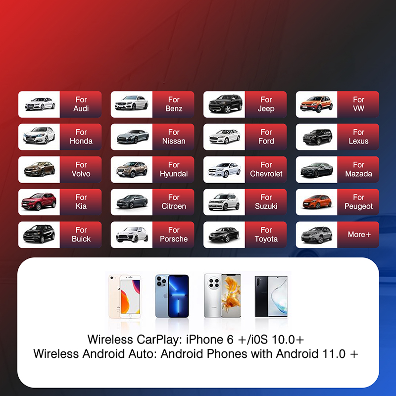 ✔Seamless Wireless CarPlay and Android Auto - Enjoy CarPlay and Android Auto wirelesslywhile you drive making it easy to take calls, play music and navigate with ease